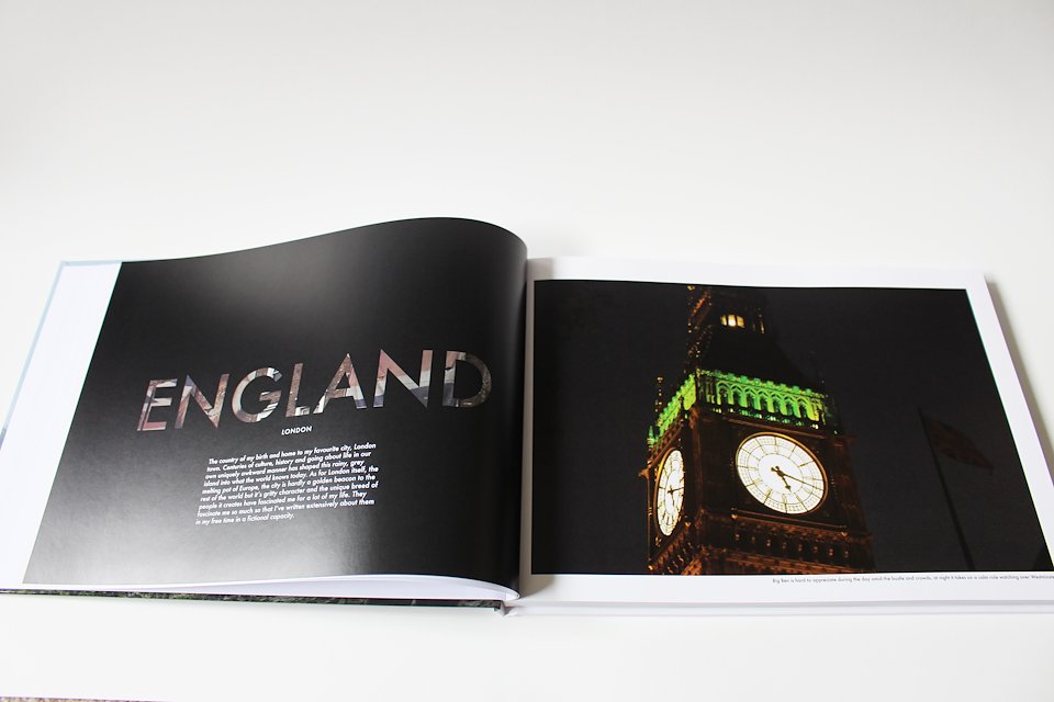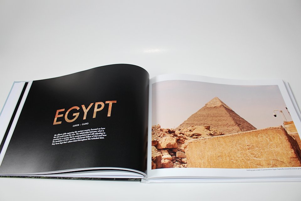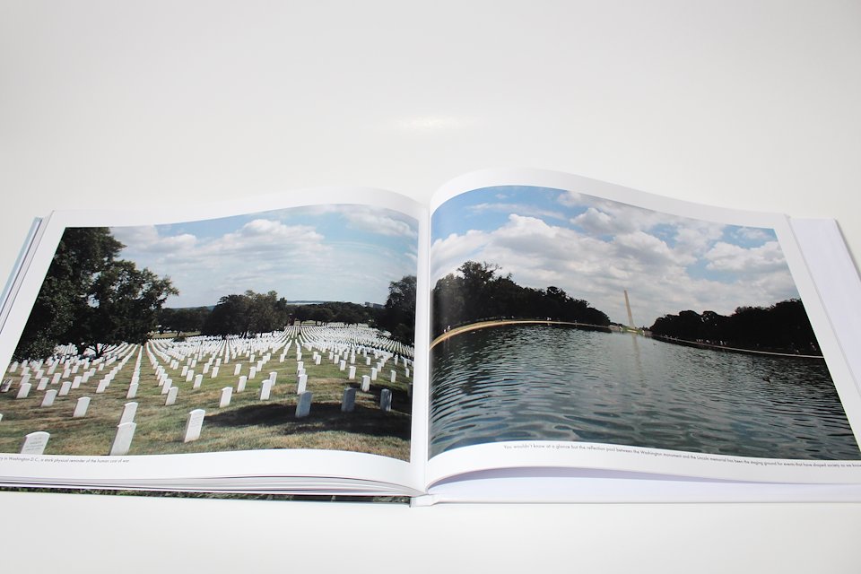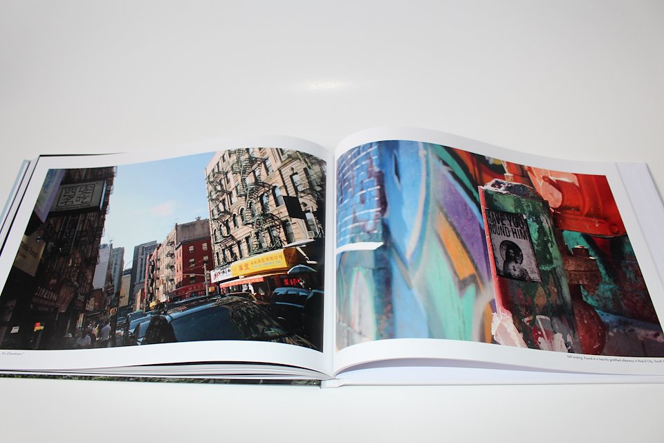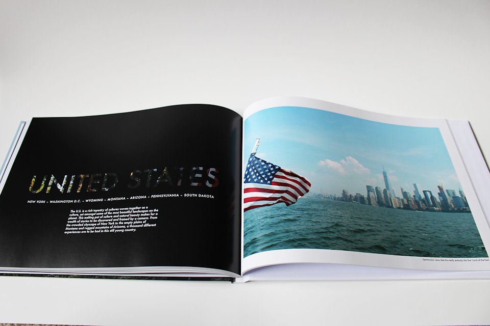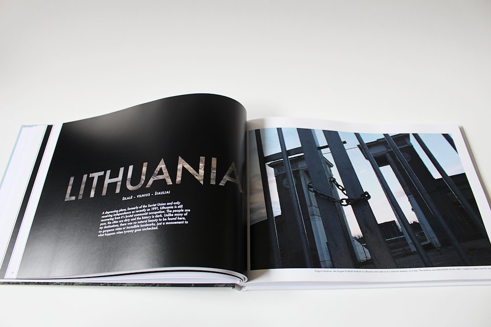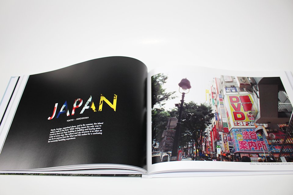 The book uses a minimalist design, allowing the images to tell the story. The story changes depending on the locale of course and my personal observations being attached below each image, ranging from the light hearted to informational and the serious. Volume One covers 13 countries, each country has 8 images including one behind the text of the title page except for the US which has 16 due to the amount of states I have visited.